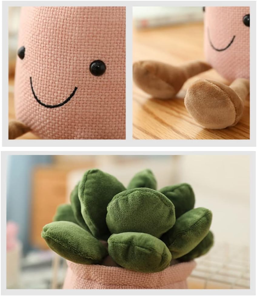 Rich pp cotton filler and made of skin friendly crystal super soft plush. Smooth to the touch, playful and cute, and has no peculiar smell. Realistic potted succulent can eliminate negative emotions and make you and your family happy. It is a versatile gift for all ages. If you know someone that loves potted plant, this is a wonderful gift. It is not just suitable for children, but for adults and teens as well.